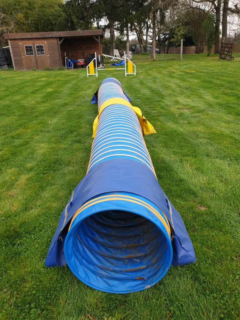 • Votre chiot à entre 3 mois et 1 an : seul le tunnel d’agility est autorisé (pas d’impacts sur son corps en évolution), il participe à la mise en confiance et la découverte.